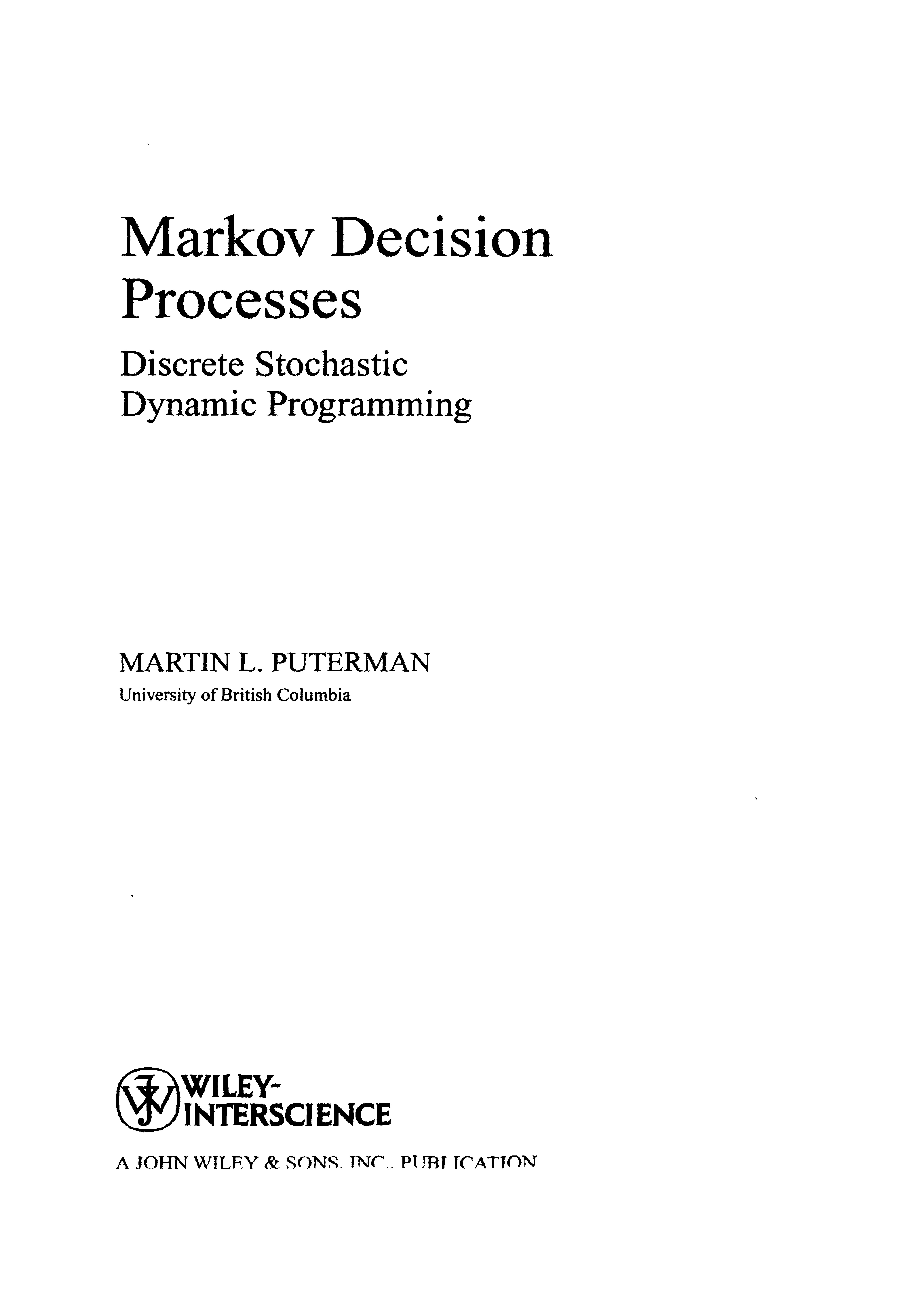 Title = "Markov Decision Processes - Discrete Stochastic Dynamic Programming",