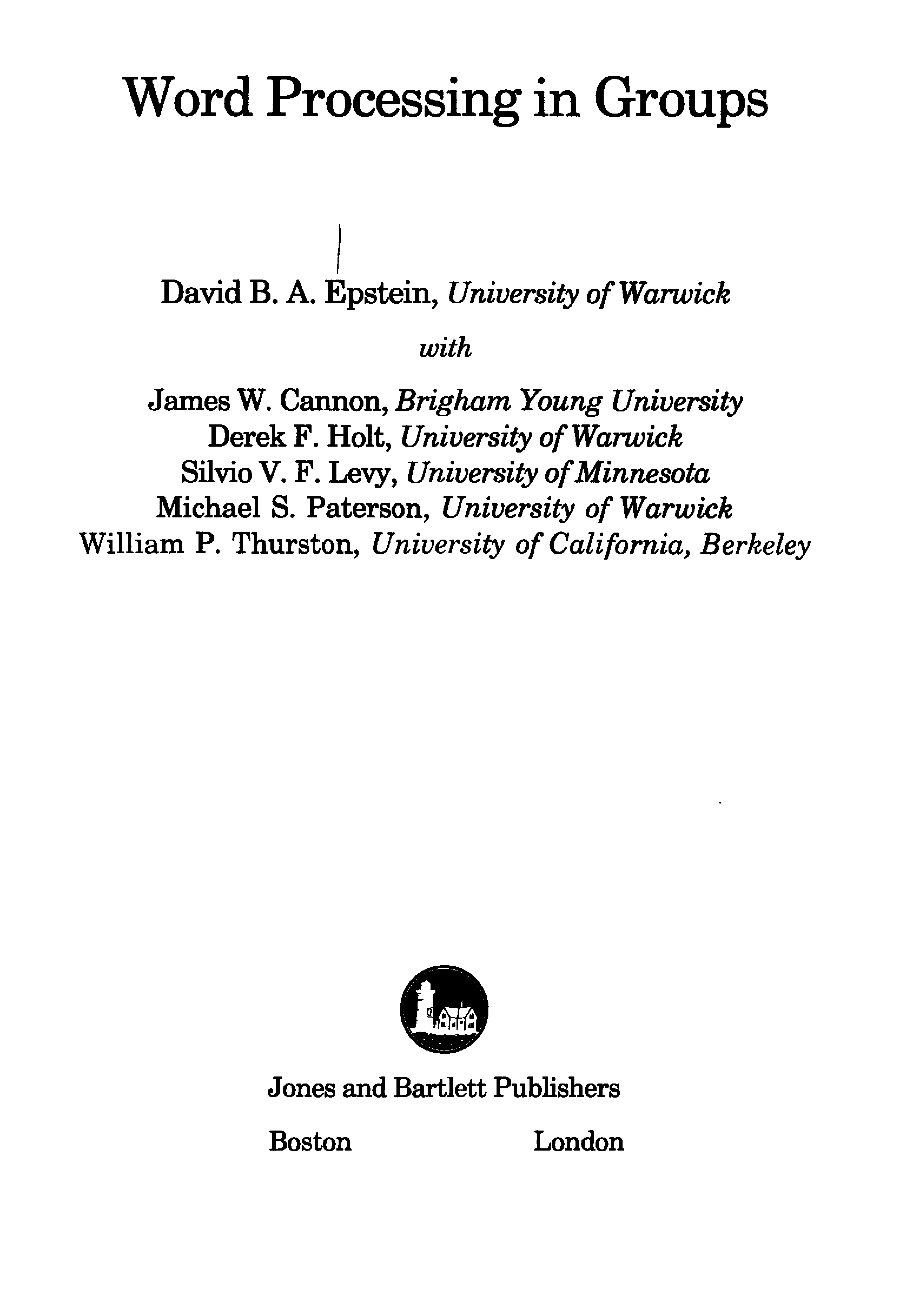 Author = "Epstein, David B. A.",