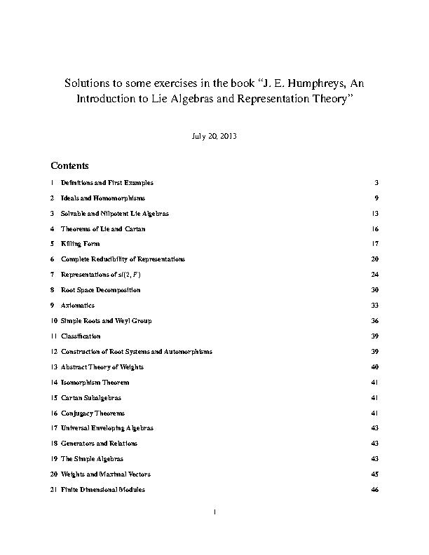 title = {Solutions to some exercises in the book "J. E. Humphreys, An Introduction to Lie Algebras and Representation Theory"},
