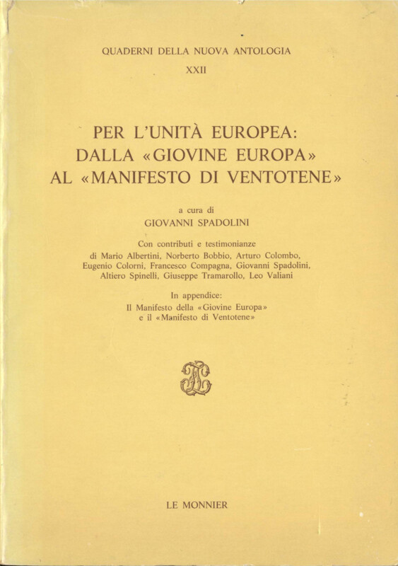 title = {Per l'unità europea: dalla "Giovine Europa" al "Manifesto di Ventotene". In appendice: Il Manifesto della "Giovine Europa" e il "Manifesto di Ventotene"},