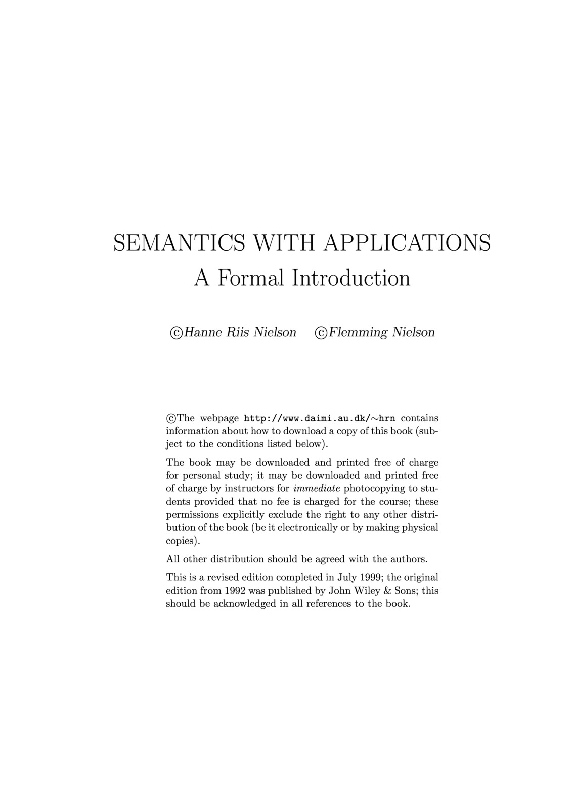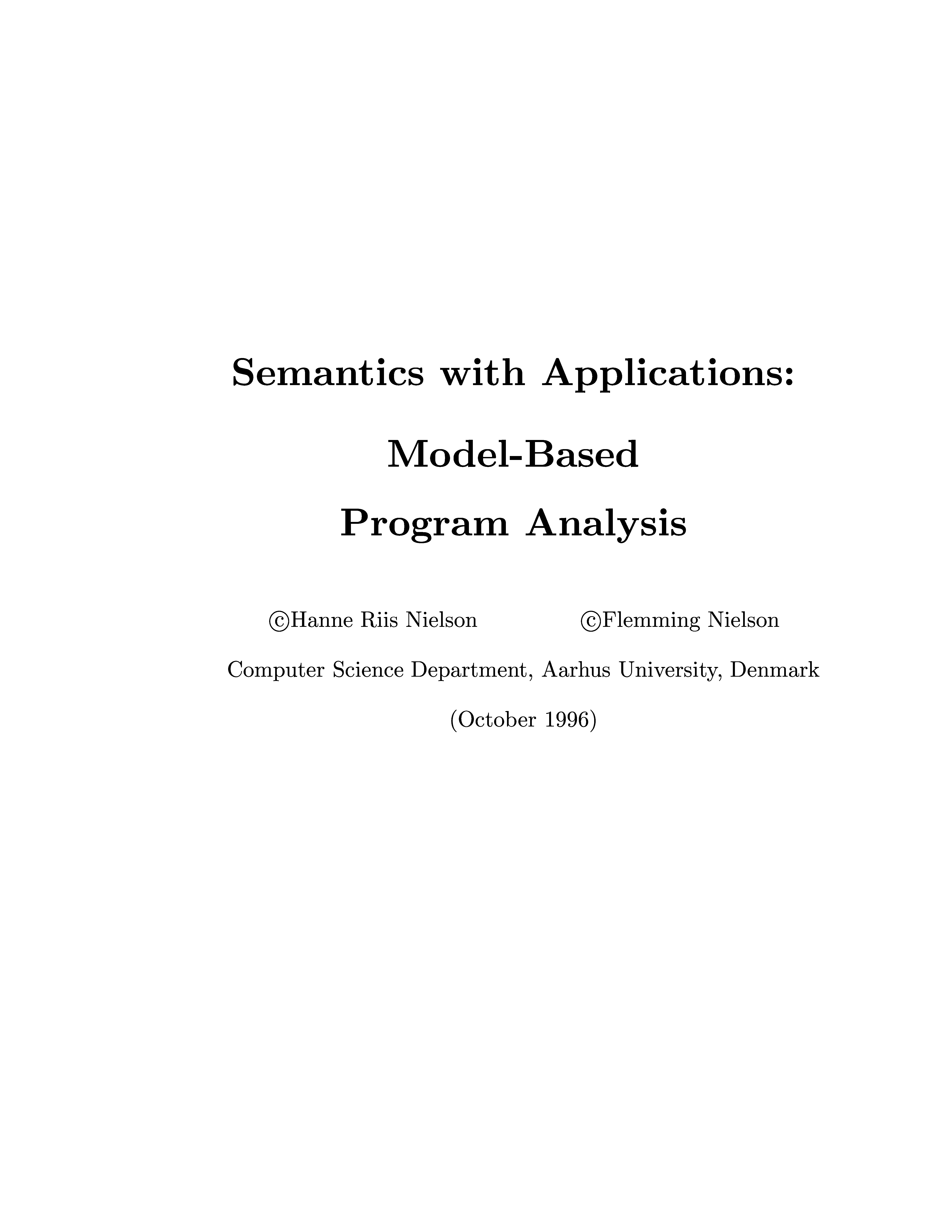 | Formal Methods: An Appetizer | Semantics with Applications: An Appetizer | SEMANTICS WITH APPLICATIONS: A Formal Introduction | Semantics with Applications: Model-Based Program Analysis |