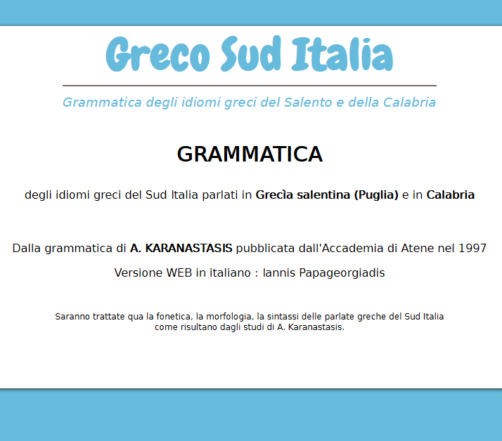 | Grammatica degli idiomi greci del Sud Italia parlati in Grec\`\ia salentina (Puglia) e in Calabria |