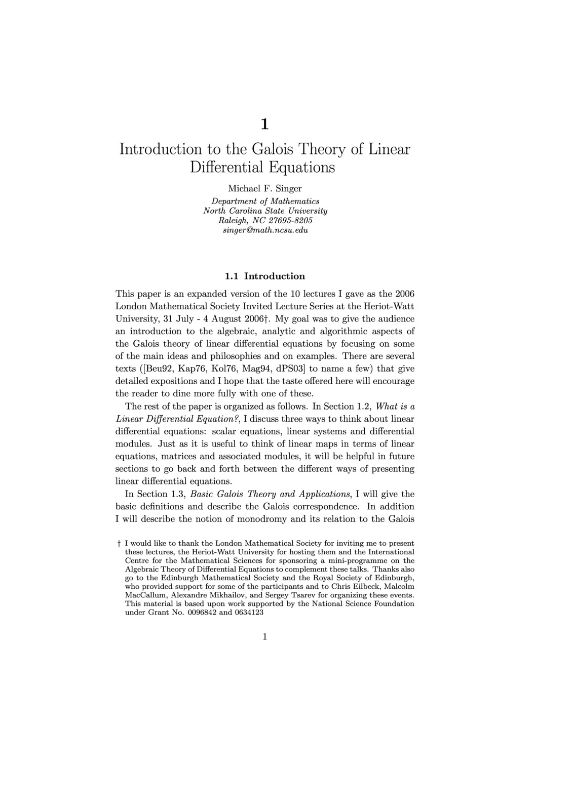 | Differential equations and computer algebra | Galois Theory of Difference Equations | Introduction to the Galois theory of linear differential equations |