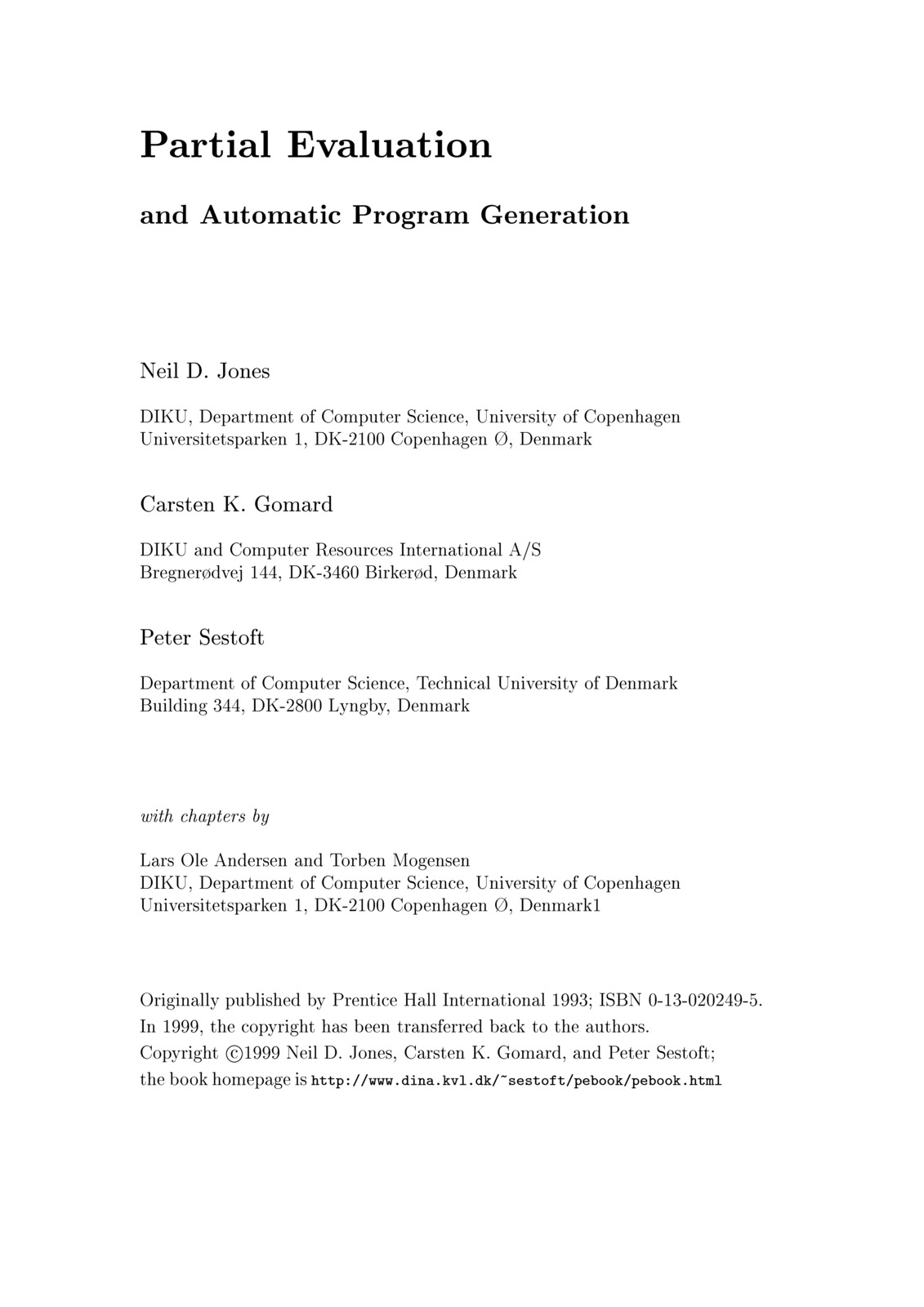 | Java Precisely, third edition (The MIT Press) | Partial Evaluation and Automatic Program Generation |