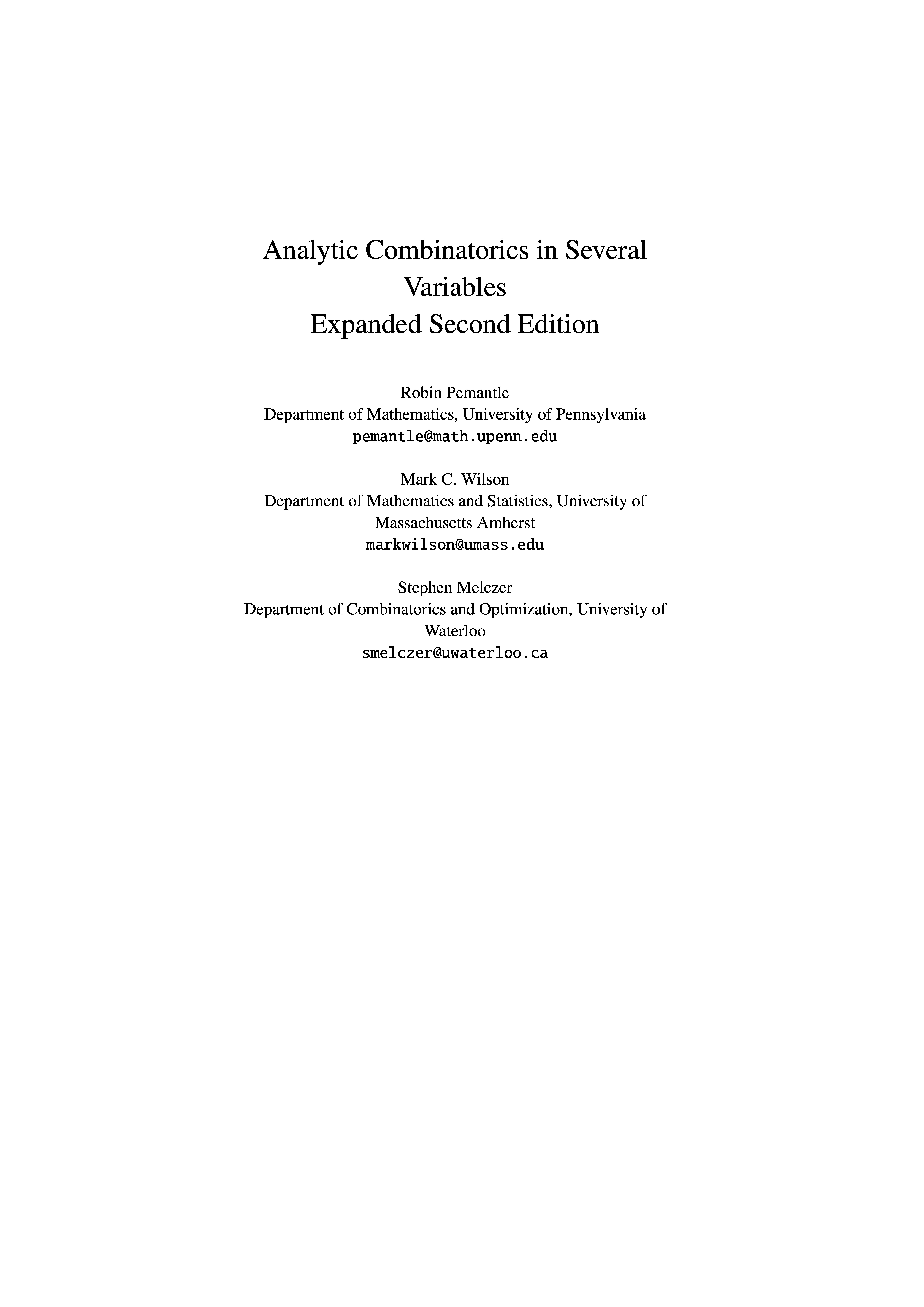 | Analytic Combinatorics in Several Variables - Expanded Second Edition | Algorithmic and Symbolic Combinatorics: An Invitation to Analytic Combinatorics in Several Variables |