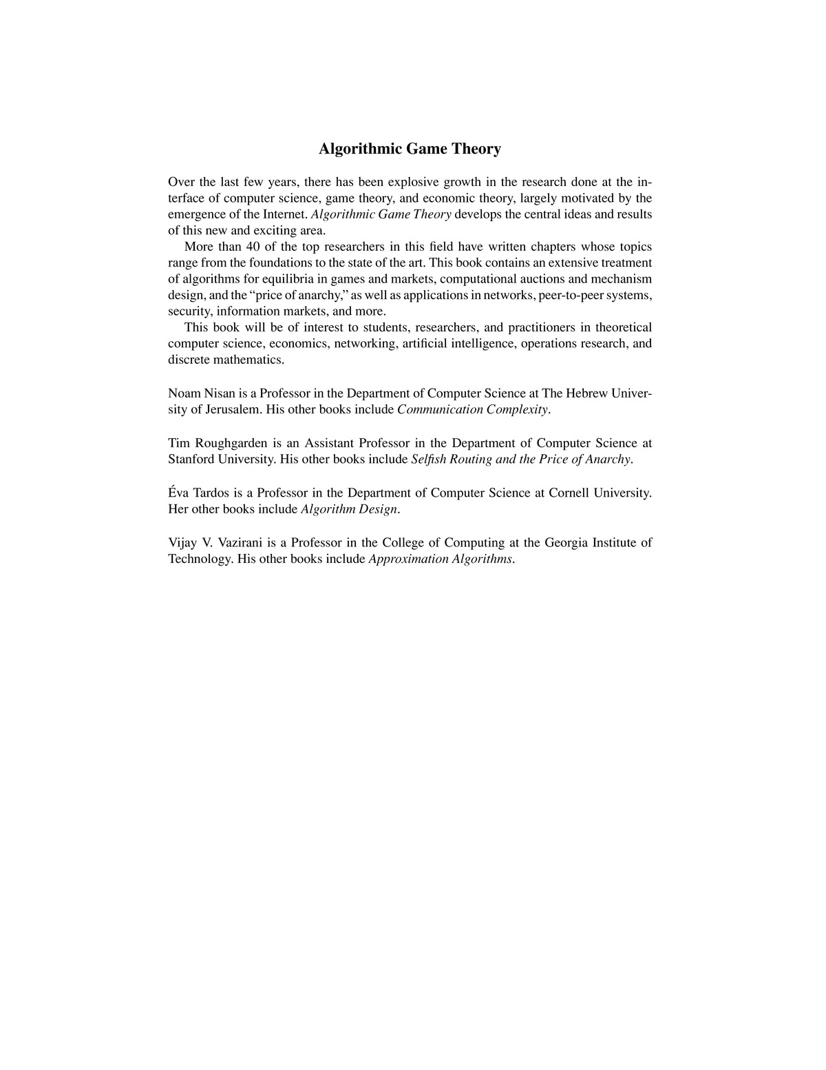 | Beyond the Worst-Case Analysis of Algorithms | Algorithmic Game Theory | Twenty Lectures on Algorithmic Game Theory |