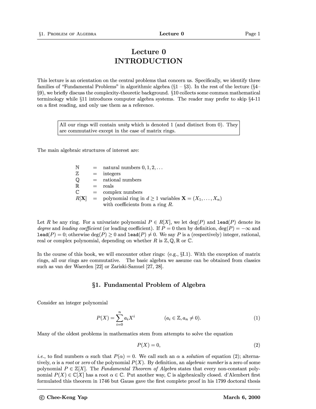 Fundamental Problems of Algorithmic Algebra