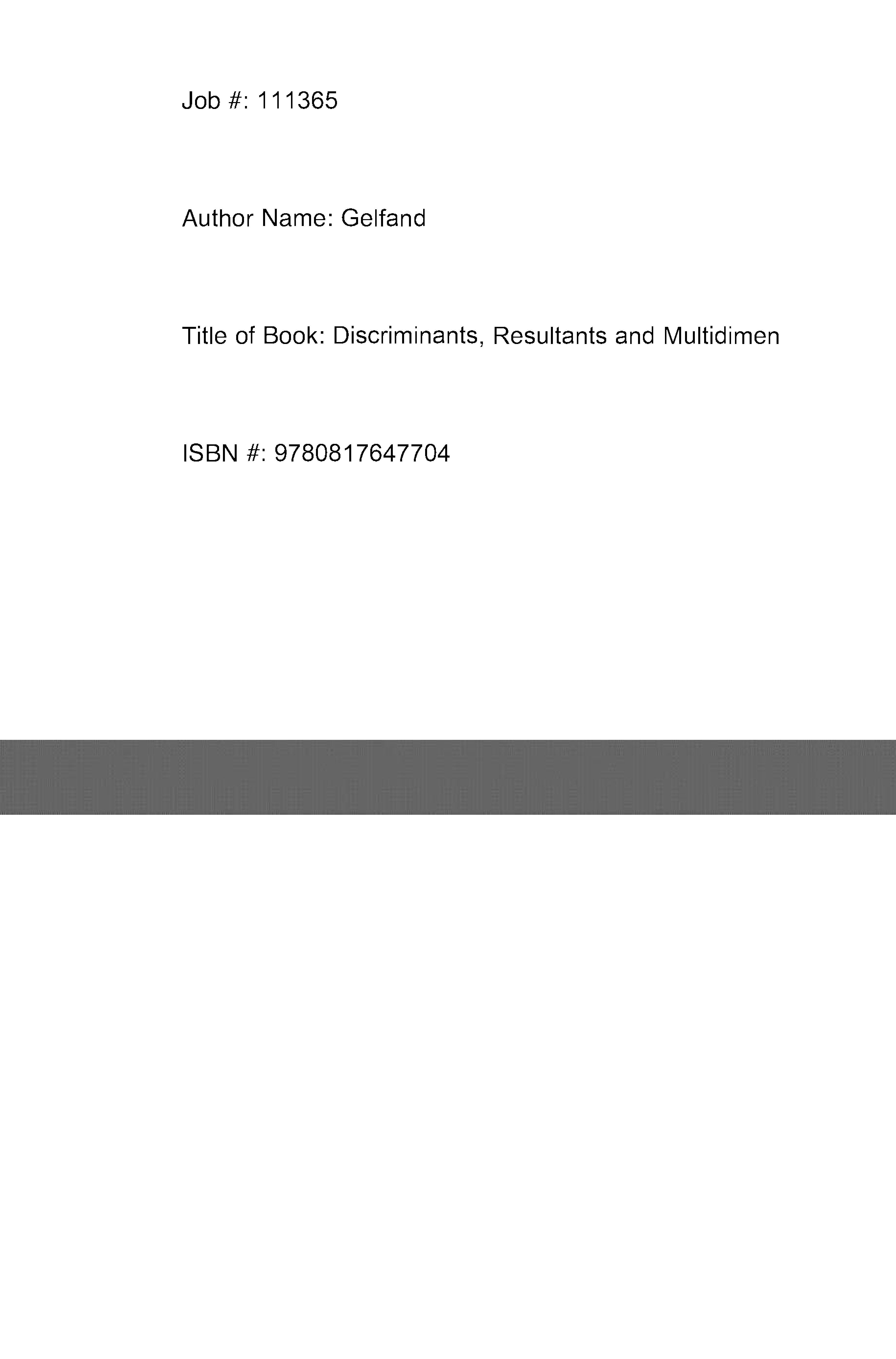 Discriminants, Resultants, and Multidimensional Determinants