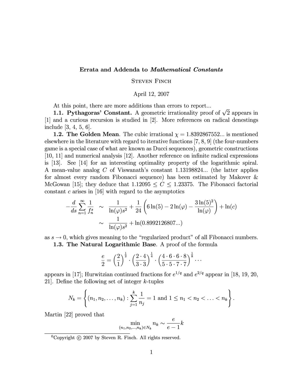 Mathematical Constants