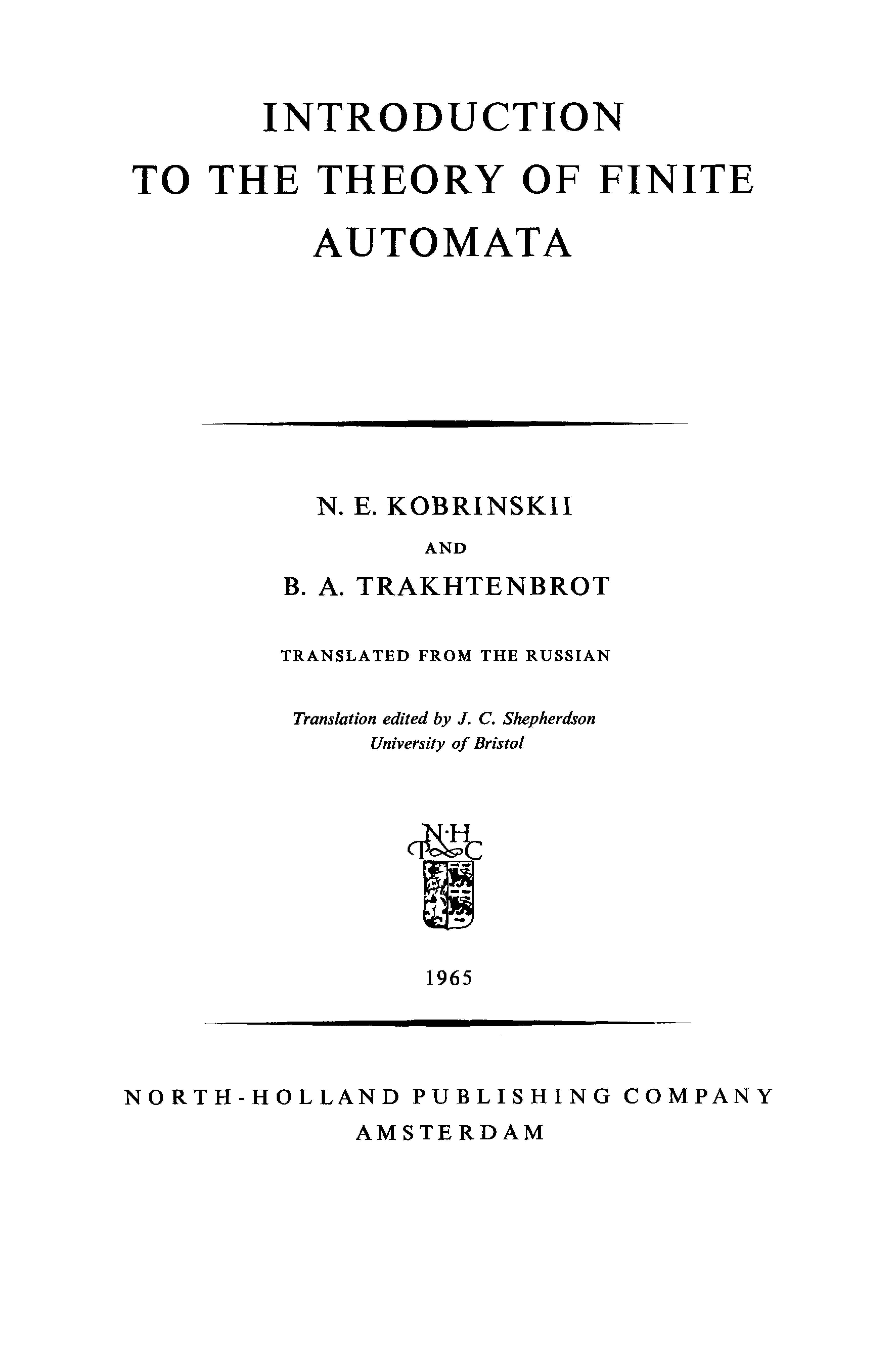 Introduction to the Theory of Finite Automata