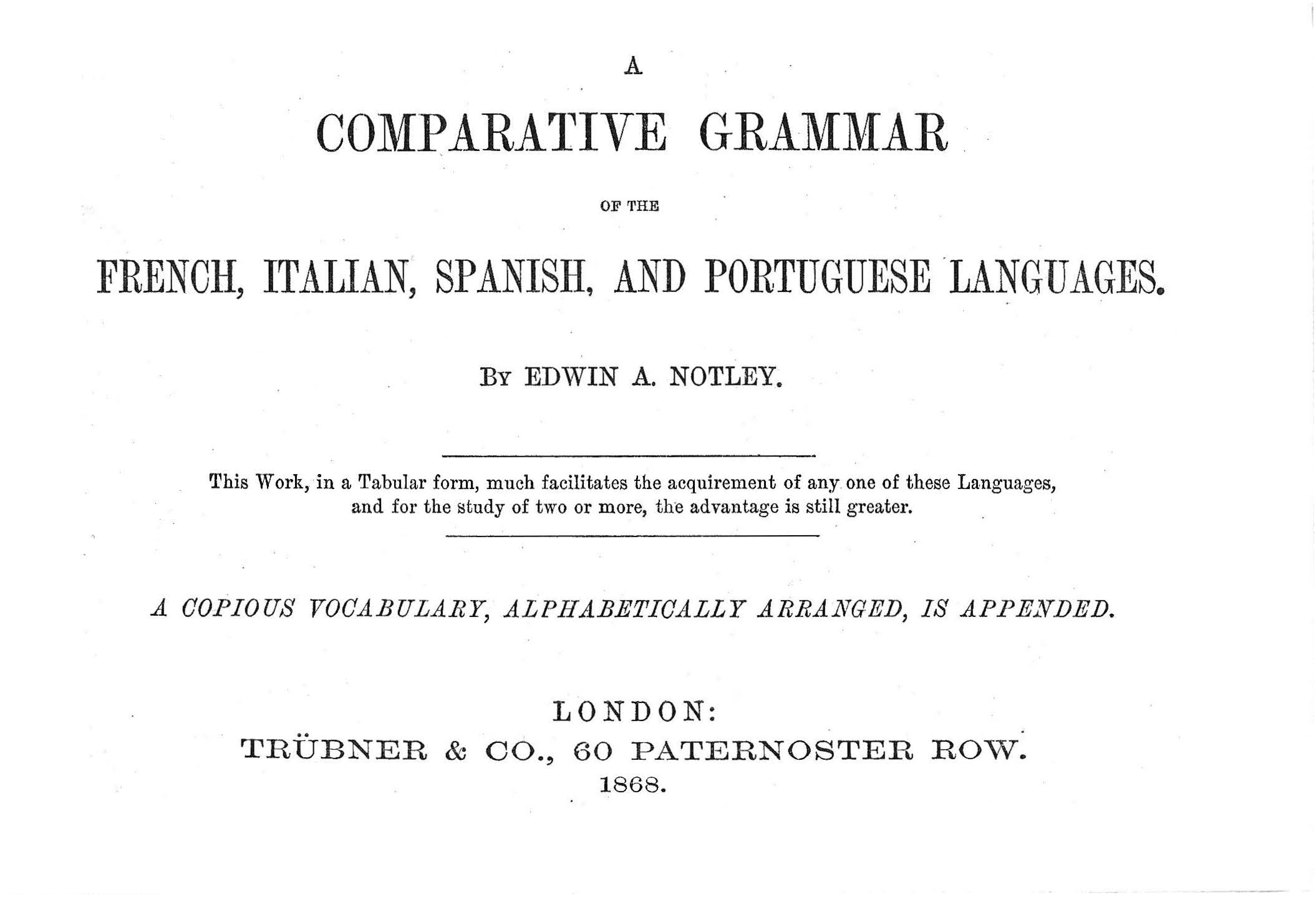 A Comparative Grammar of the French, Italian, Spanish and Portuguese Languages