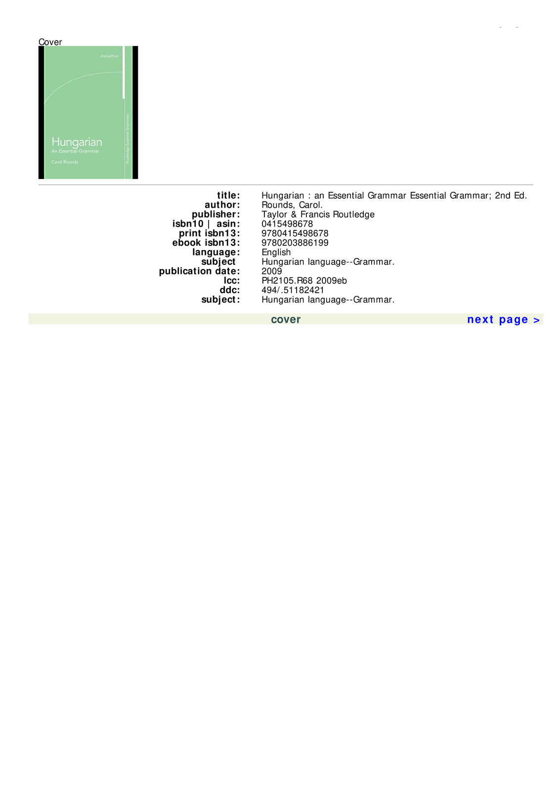 Hungarian: An Essential Grammar